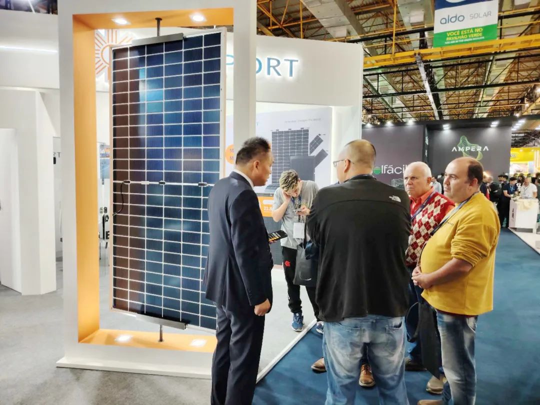 ? ? 8月29日—31日,2023年南美智慧能源展(The Smarter E South America 2023) 在巴西圣保羅北方會展中心(Expo Center Norte)盛大開幕,展會聚焦于光伏發電、光熱技術以及可再生能源整合的解決方案,高端光伏產品一流供應商日托光伏攜多款組件產品驚艷亮相,全方位展示公司技術實力、創新能力及產業化的領先優勢。展會現場人流如織,亮點滿滿。