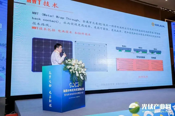 3月14日,以“筑夢之南 光啟新程”為主題的2023海南分布式光伏發展論壇暨海南省能源協會籌備大會在??谡脚e辦。日托光伏高級銷售經理郭昊受邀參加關于海南光伏發展新模式的主題對話并以“MWT輕柔組件在分布式光伏中的應用優勢及案例分享”為主題發表演講。