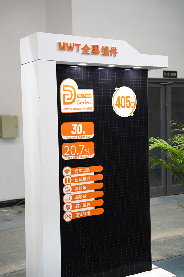 本次展品中還包括了D系全黑組件,組件正面無主柵線無焊帶的設(shè)計(jì)實(shí)現(xiàn)視覺全黑,外觀大氣雅致,受到工商業(yè)及戶用高端市場(chǎng)的認(rèn)可。