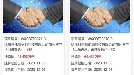 徐州谷陽新能源科技有限公司部分資產(工裝夾具、備件等資產一批)、徐州日托新材料科技有限公司部分資產(舊設備資產