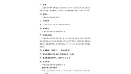 無錫日托光伏科技有限公司現對無錫日托 2024 年廢水站含氟污泥處置項目實施公開招標。竭誠邀請廣大信譽好、供應