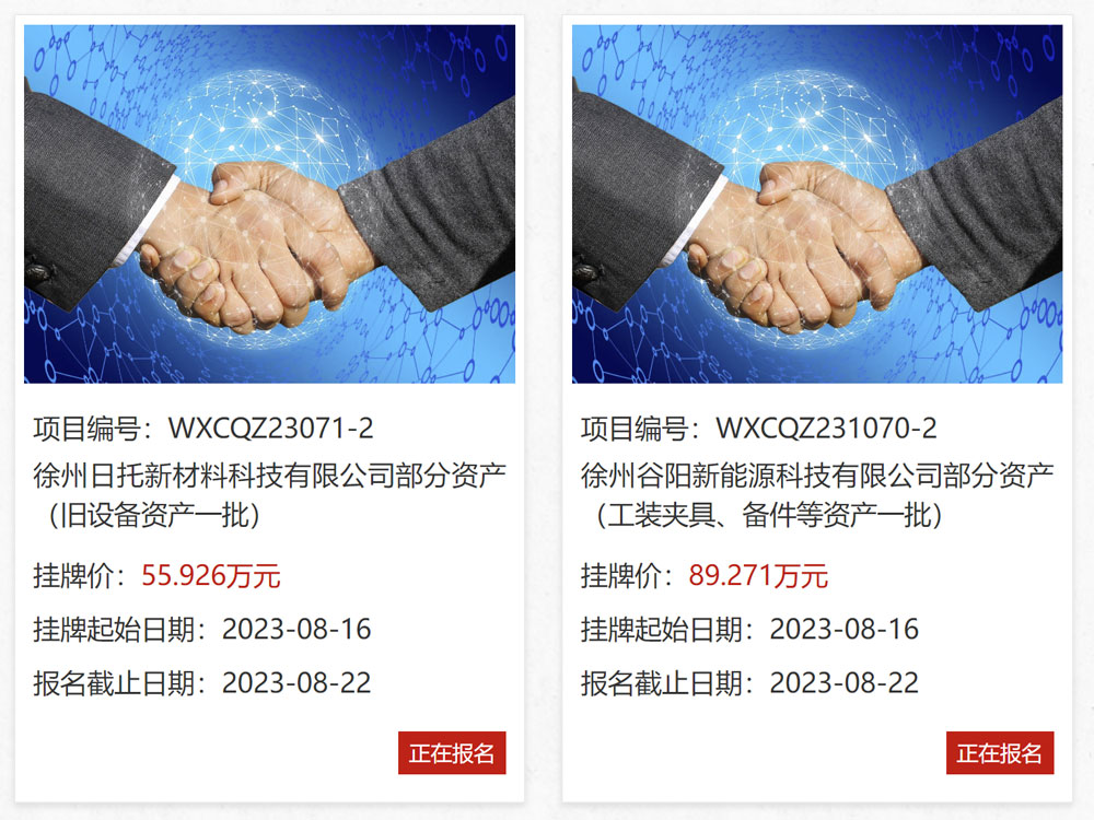 徐州日托新材料科技有限公司部分資產(chǎn)(舊設(shè)備資產(chǎn)一批)、徐州谷陽新能源科技有限公司部分資產(chǎn)(工裝夾具、備件等資產(chǎn)一批)招標(biāo)
