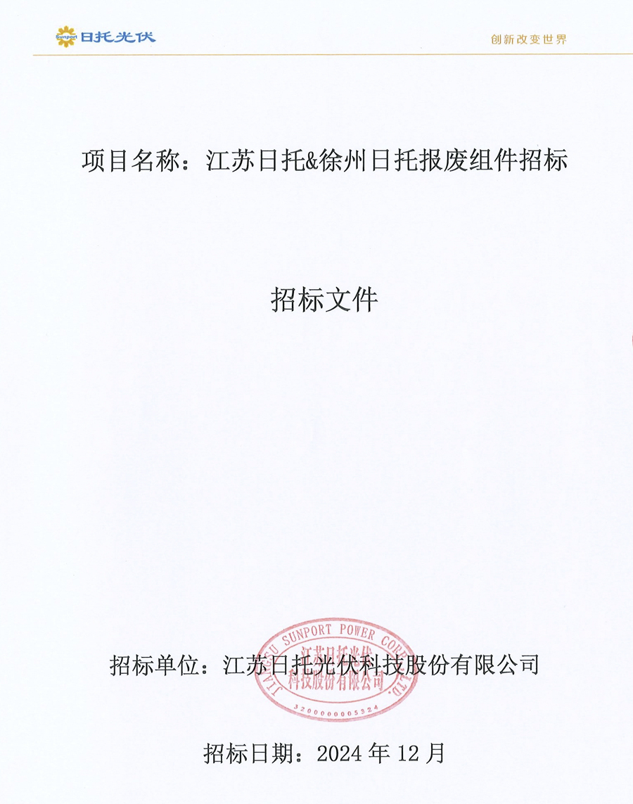 我司及其子公司現(xiàn)有約 13979塊報廢組件(其中徐州日托9026 塊、江蘇日托 4953 塊)進行整體銷售(詳見附件報價單及明細清單),誠邀各位參加競標。
